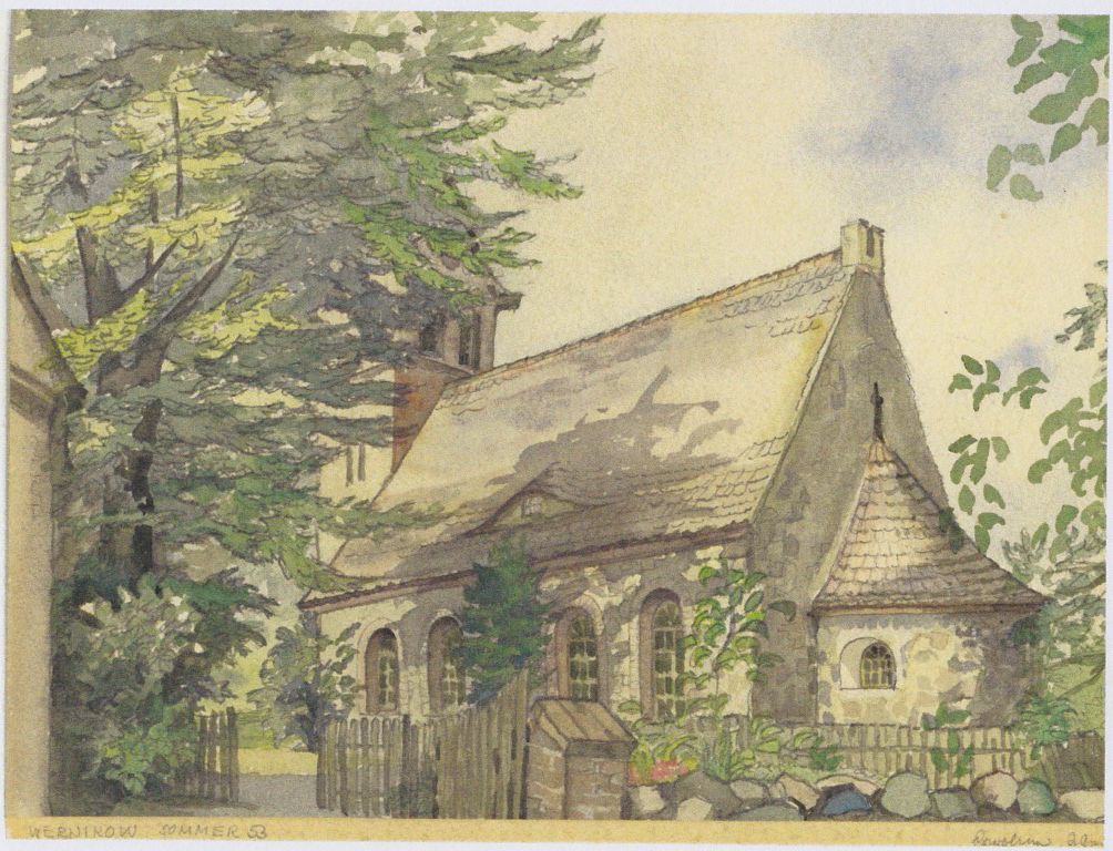 Ihr Schwager war von 1948 bis 1953 Pfarrer in Wernikow.  In so manchen Ferien war die heut pensionierte Lehrerin hier zu Besuch im Pfarrhaus, so auch zur Geburt der ältesten beiden Söhne ihrer Schwester 1951 und 1953. Bei ihren Aufenthalten fand sie sogar Gelegenheit Wernikower Motive zu malen. Zeichnungen von der Kirche und ein Landschaftsbild hatte sie dabei.