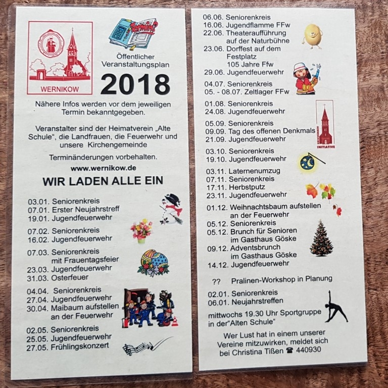 Der Veranstaltungsplan für 2018